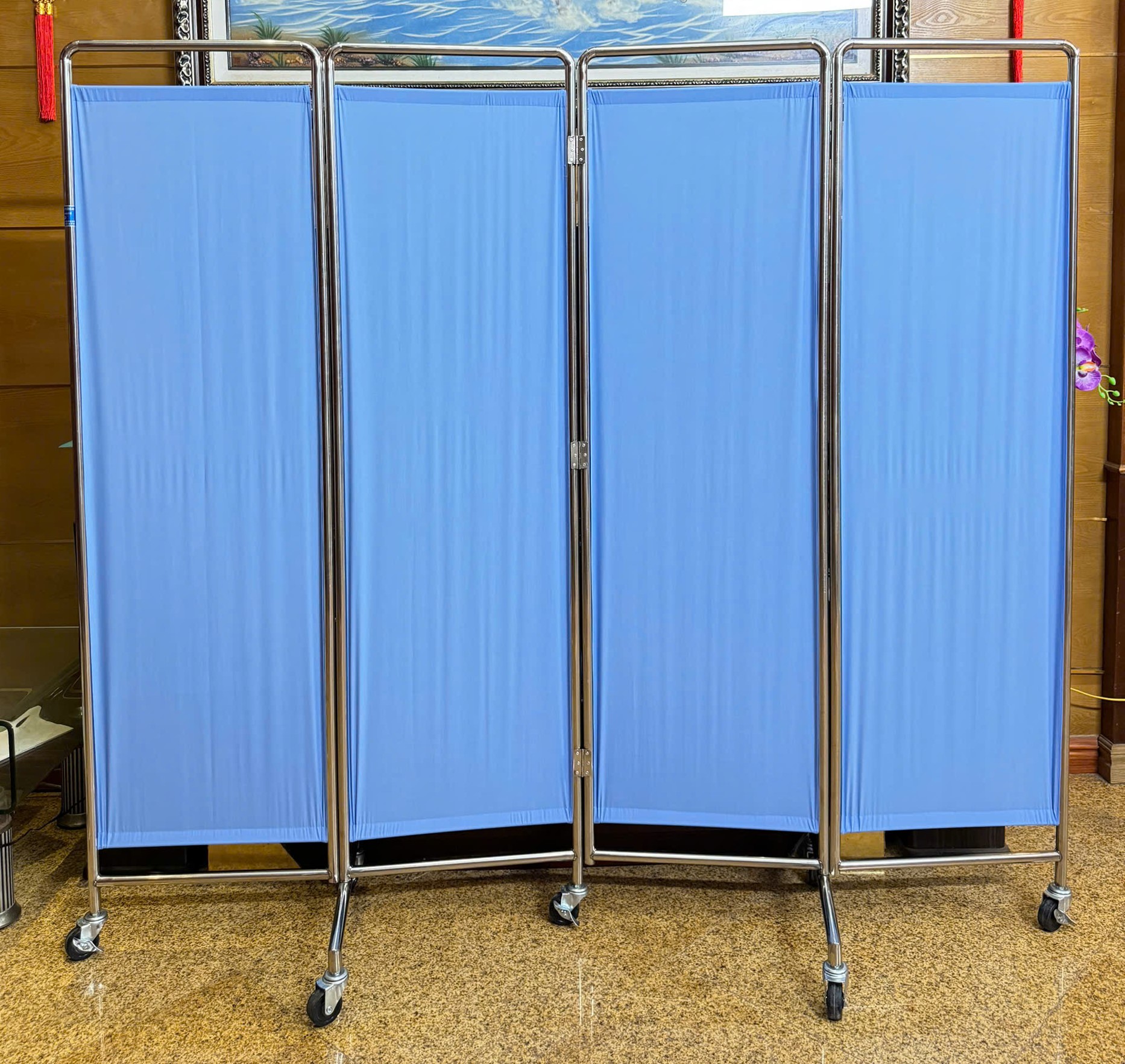► Chất liệu: Khung inox, nền vải xanh